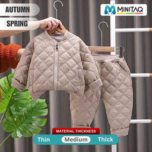 Beige Quilted Puffer Winter Jacket N Pants 2pcs Set