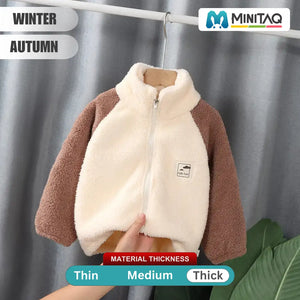 Plain Blue Winter Fleece Neck Jacket For Kids
