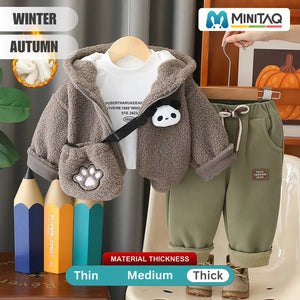 Brown Bear Fleece Zipper Jacket N Pants 2pcs Set