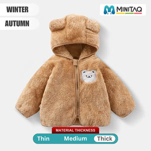 Soft Comfy Ivory Hooded Jacket with Bear Patch