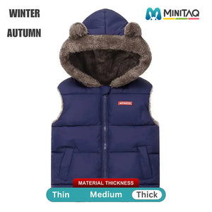 Hooded Puffer Ink Blue Vest With Bear Ears